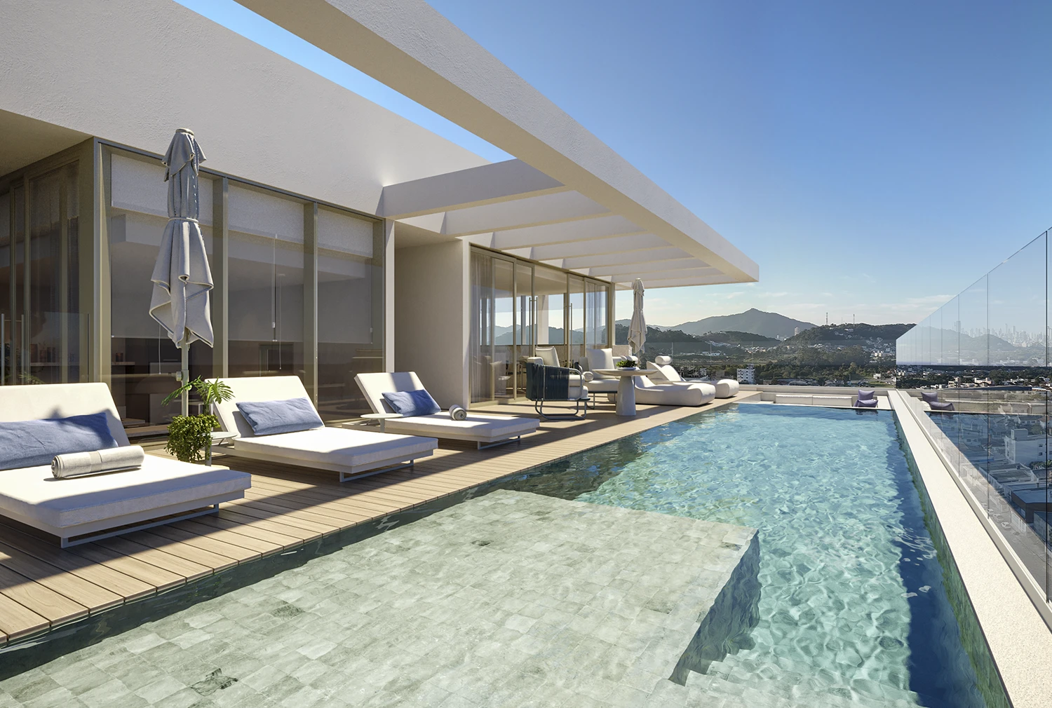 Com 391 m² dedicados ao bem-estar, o rooftop foi projetado para mais do que momentos de lazer, ele convida à pausa, à conexão e à contemplação.